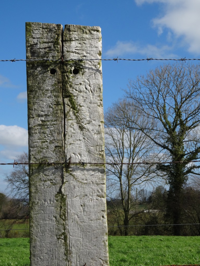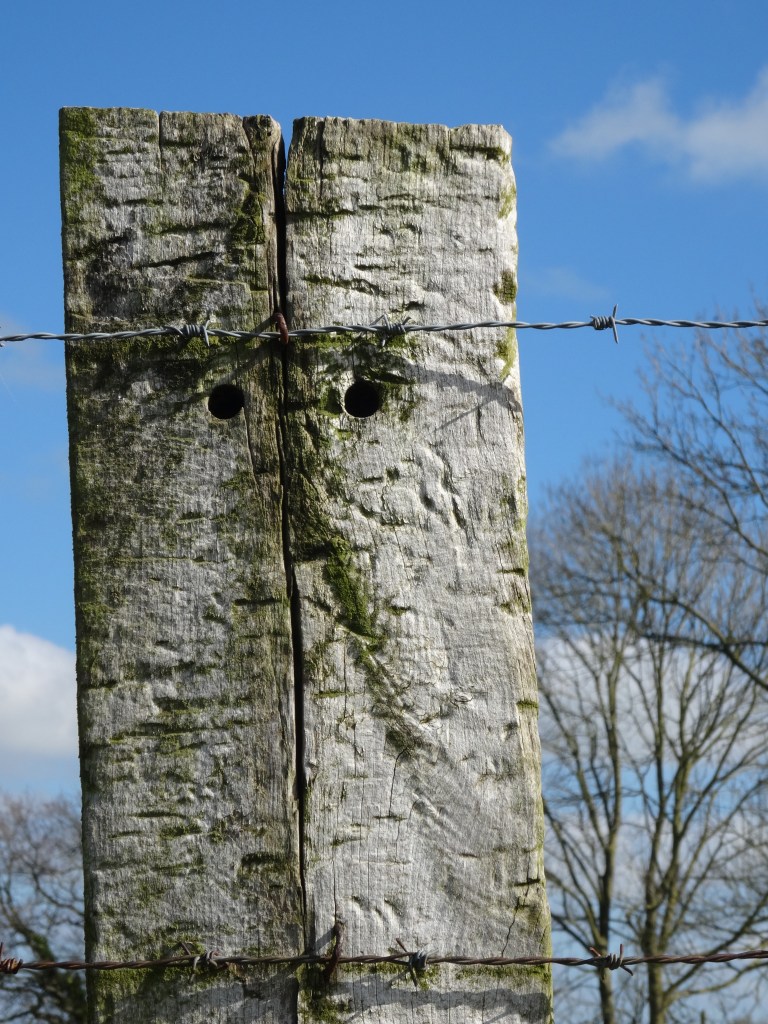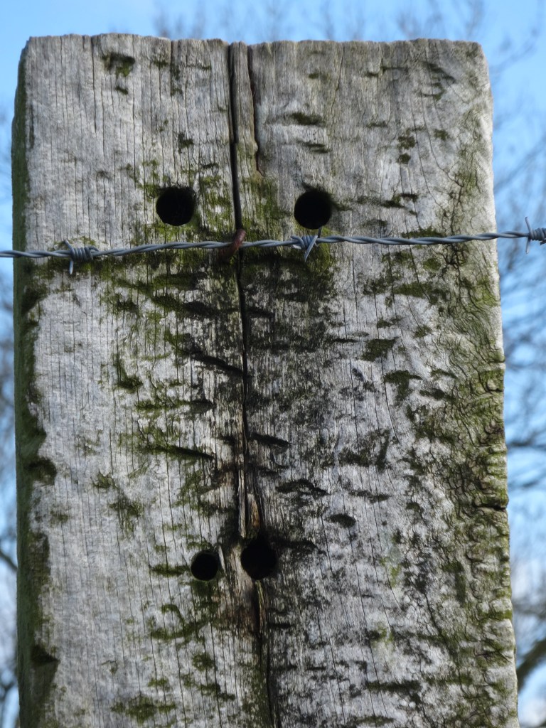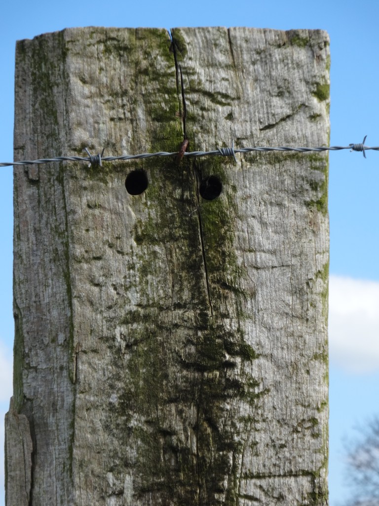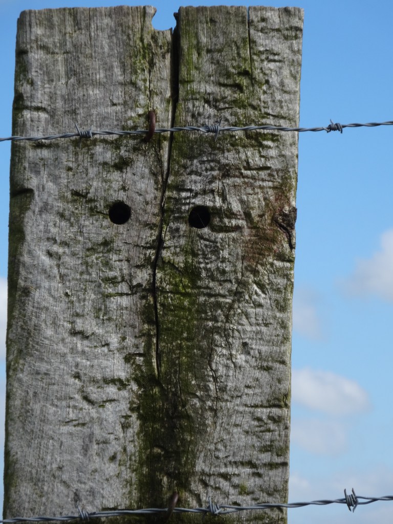 Vieux piquets de clôture, traverses de chemins de fer récupérés par les paysans sur les chantiers de la SNCF; leurs yeux creusés par des boulons perdus, leurs sourcils en fil de fer, leurs ravinés par les veines du bois, leurs bouches muettes, à peine tracées.