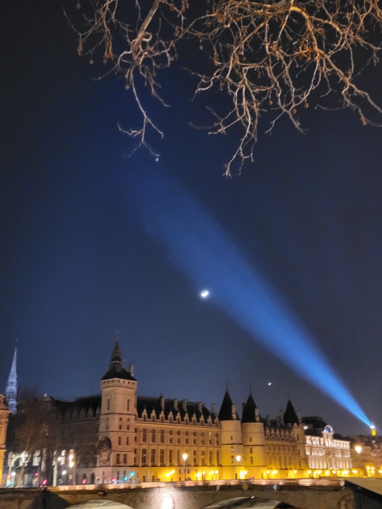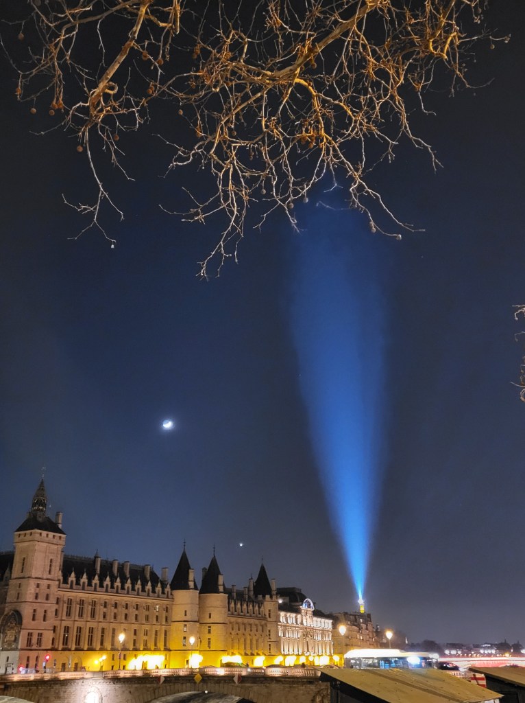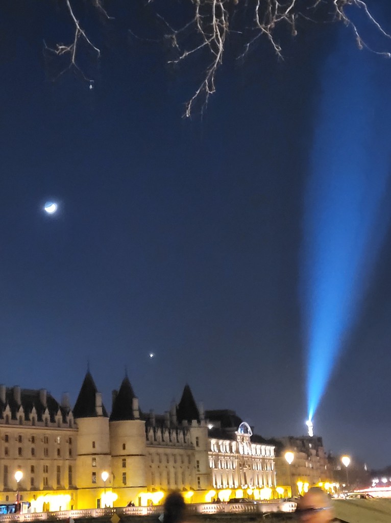 La lune et Jupiter ont rendez-vous très loin de la planète Terre. Dans le ciel de Paris, la Tour Eiffel entend bien être de la partie (Paris, 2025)